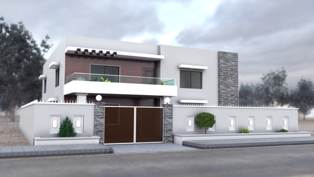 - Security & Style: The top of the boundary wall is finished with sleek security spikes that blend into the architectural silhouette rather than detracting from it.